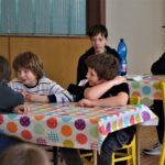 Marian Pokorný (3/7, 23.), Vít Růžička (3/7, 25.), Jan Skubi (3/7, 28.), Matěj Křížek (2,5/7, 30.), David Hanák (2/7, 34.) se seřadili ve druhé polovině. Měl jsem radost, že ta hra už snese nějaká měřítka, už (často) nejde o elementární taktiku – góóól, Slavia dala gól! – ale o plánovitější hru doplňovanou průběžným propočtem. Nejlépe dopadl nejmladší Marian, nejhůře David, který letos na kroužek nechodí a maličko na ostatní začíná ztrácet. Výsledkově žádná bomba, ale důležité „člověkominuty“, hrajeme, bojujeme a ono to (pů)jde.
