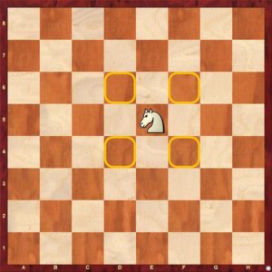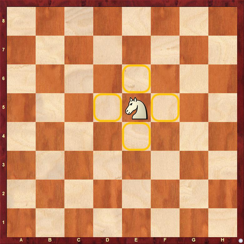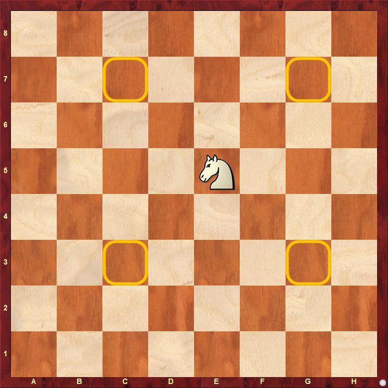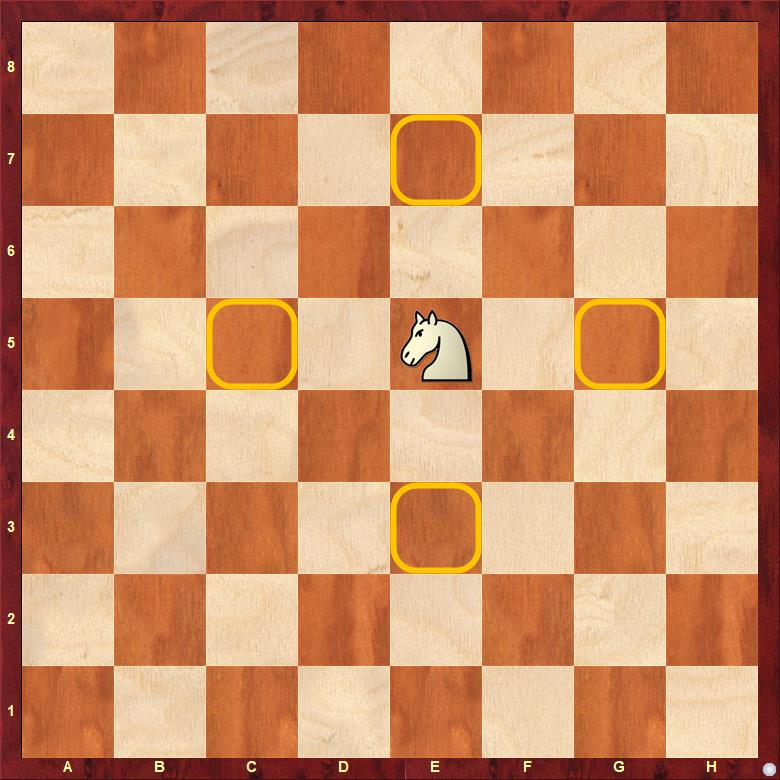 Na tahle pole se jezdec dostane dvěma tahy (takže už prvním tahem dá šach).