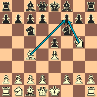 Dvojí úder na f7 a c6 (příp. i tlak na b7). Ale bílý útočí jedinými dvěma vyvinutými figurami, zatímco černý má ve hře čtyři (střelci již působí na řadu polí). Černý neudělal chybu, v pozici tedy musí být aspoň jeden dobrý tah. A kdyby jeden, jsou tam hned čtyři! Obranné tahy Dg6, Df6, Jd8 … a dokonce i útočný výpad Jd4! Po 7. … Jd4 8. Dxf7+ Kd8 je hrozba Jxc2 prakticky nekrytelná (9. Sb3? Dxg2).