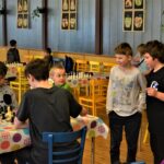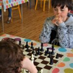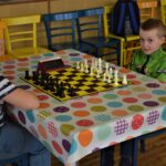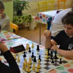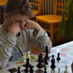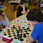 Se smíšenými pocity hodnotím výkon Zdeňka Šmída a Tobiáše Brokeše. Ledacos se už naučili a často to opravdu vypadá jako šachy. Pořád ale rozhoduje ta nejzákladnější taktika, tj. nastavování a braní figur, příp. nemožné tahy. U Zdeňka se nedalo spolehnout, že rozumné pozice zvládne, nakonec vždycky něco nastavil. Tobíka jsem tolik neviděl, snažil jsem se zapisovat partie na prvních dvou deskách, ale asi to bylo podobné. Zdeněk se nakonec jedné výhry dočkal (1/9), Tobík ne (0/9). Pokrok je vidět, ale soupeři se zlepšují taky, nikdo úplně slabý tam nebyl.