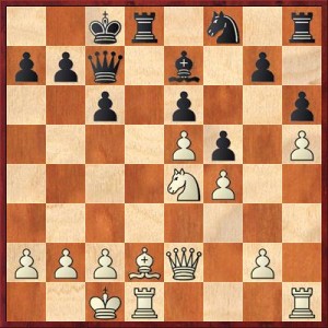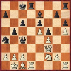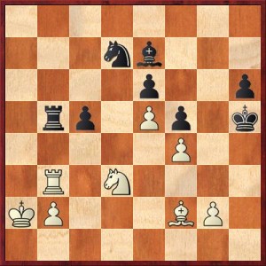 V diagramu po 28. Vh3 a vlastně dalších několik tahů měl příjít postup c5, který mi držel mírnou výhodu. Bohužel jsem po Jd5 a dalších tazích, kdy se mi c5 nezdálo nejlepší, o výhodu přišel. Sledoval jsem totiž zcela jiný plán možné výhry –