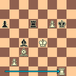 Motor tu navrhuje dadaistické 50. … Kh5, protože po přirozeném 50. … Kf7(?) vychází 51. Vg7+ Ke8 52. Ve7+! Kd8 53. Sa5+ Kc8 54. f7 Sxf7 55. Vxf7 a díky pěšcům na šachovnici je koncovka V+S x V vyhraná. Nejde ani 52. … Kf8 53. Sb4! s vytvořením odtažné baterie nebo 53. Vc7! Sd3+ 54. Ke3 Vd8 55. Sb4+ Kg8 56. f7+ atd. nebo 53. … Sd5+ 54. Ke5 Vd8 55. Se7. 1:0