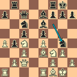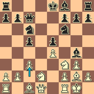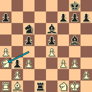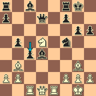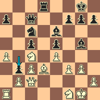 Můžeme začít třeba tady: kontury pozice jsou jasné: izolák předurčuje plány obou stran. Zanedlouho se však pozice takticky zkomplikuje; není divu, že oba hráči ztráceli už v zahájení spoustu času. Černý zkusí něco udělat s nepříjemnou vazbou – a pak už hrr na pěšce: 11. … h6 12. Sh4 Dd7!? Zajímavý ústup z vazby! 13. Sg3! Hrozilo nepříjemné Jf5. 14. Sxe7 by odevzdalo dvojici střelců, to v takové pozici nebude dobré. Teď však lze pěšce už jednotahově sebrat. Získá za něj bílý kompenzaci? 13. … Sxd4