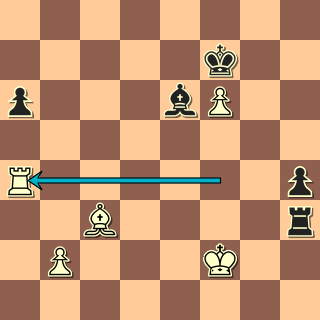 Kterého pěšce má černý pustit: a nebo h? 44. … Vd3? Možná ani jednoho, 44. … Sc8 lze. Ale i po pádu pa6 dává ph4 dobré aktivní protišance, ten padnout nesměl. 45. Vxh4! Po 45. Vxa6? h3 by měl černý pravdu. Nestejní střelci sice pořád napovídají remízu, jenže udrží černý blokádu pf6?