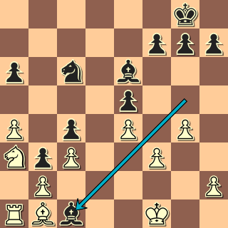 Ani se nezdá, jak je černopolný střelec cenná figura. Petr dopustil jeho výměnu a od té doby to šlo z kopce. 16. Jfd2? (16. Sd2, 16. Sc1) Vfd8 17. f3 Jxe3 18. Vxe3 Sg5 Černý ovládá černá pole a získá i d sloupec, to už je citelná převaha.