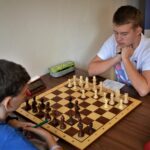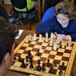 Začali jsme proti Poličce a ještě nějakou dobu po zahájení jsem spokojeně konstatoval, že to i vypadá jako šachy. Ale pak už se začaly dít věci … Pro duševní zdraví trenéra je třeba mít na paměti, že když soupeř vidlí hrozí, taky ji v příštím tahu dá, že věž navíc neznamená pro výsledek partie vůbec nic, že kdo si může vlézt do odtahu, vleze si do něj, že z rovné koncovky lze během pár tahů vytvořit koncovku o tři pěšce horší … Něco jsem viděl už při letmých obhlídkách a ještě víc potom při přepisování partií. Nasbíral jsem spoustu materiálu na téma typické chyby – jenže mnohdy téměř pro kroužek začátečníků. Au, au.