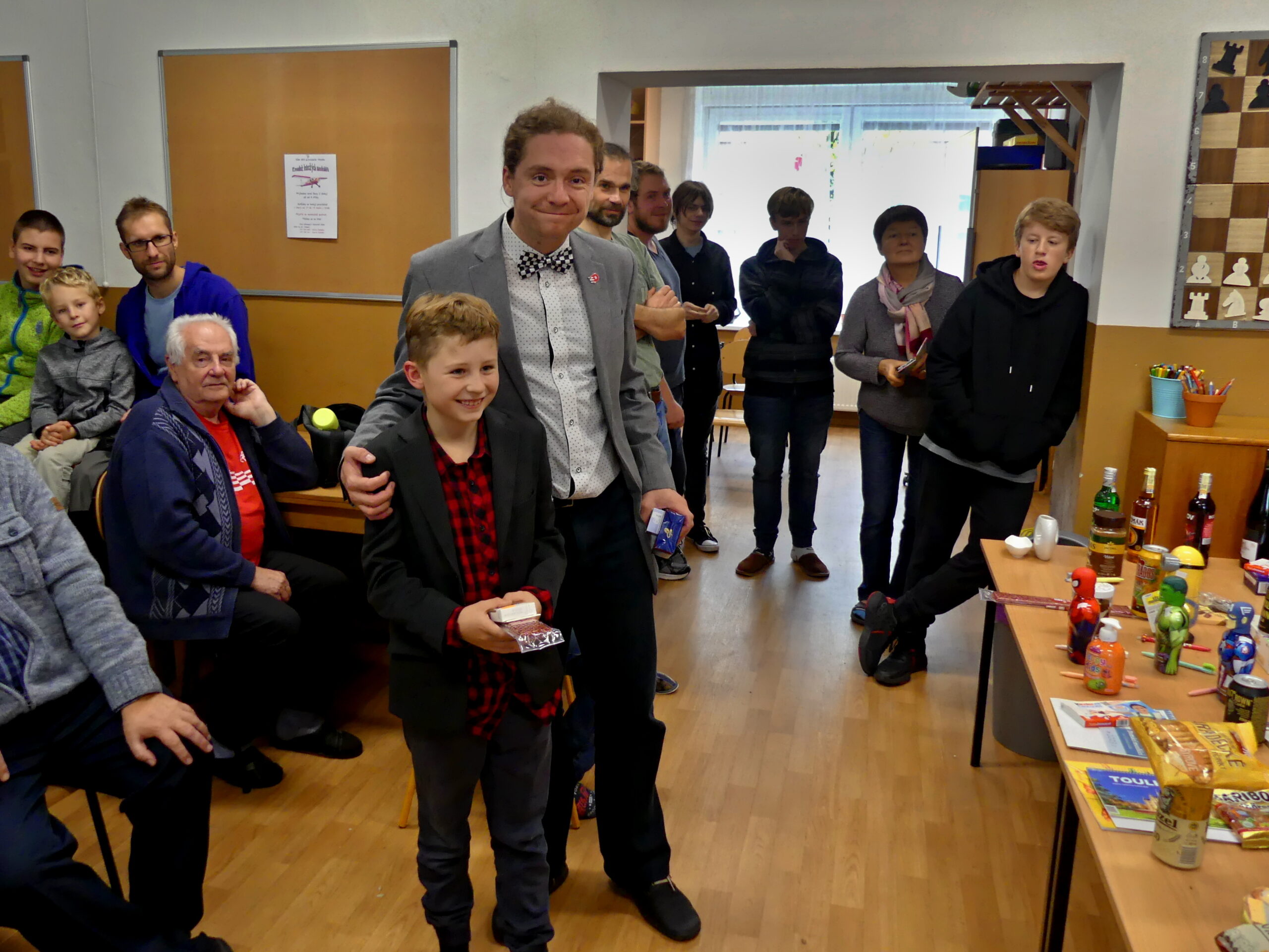 Pročež jsme chtěli slavit, jenže k tomu došlo kuriózně až na druhý pokus – jinak pečlivá ředitelka turnaje omylem ťukla výsledek na první šachovnici obráceně a z vítězství v turnaji se pár minut radovali naši konkurenti z posledního kola… než jsme výsledkům dali náležitou podobu. Hylamy vítězí!