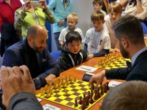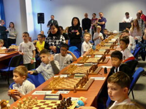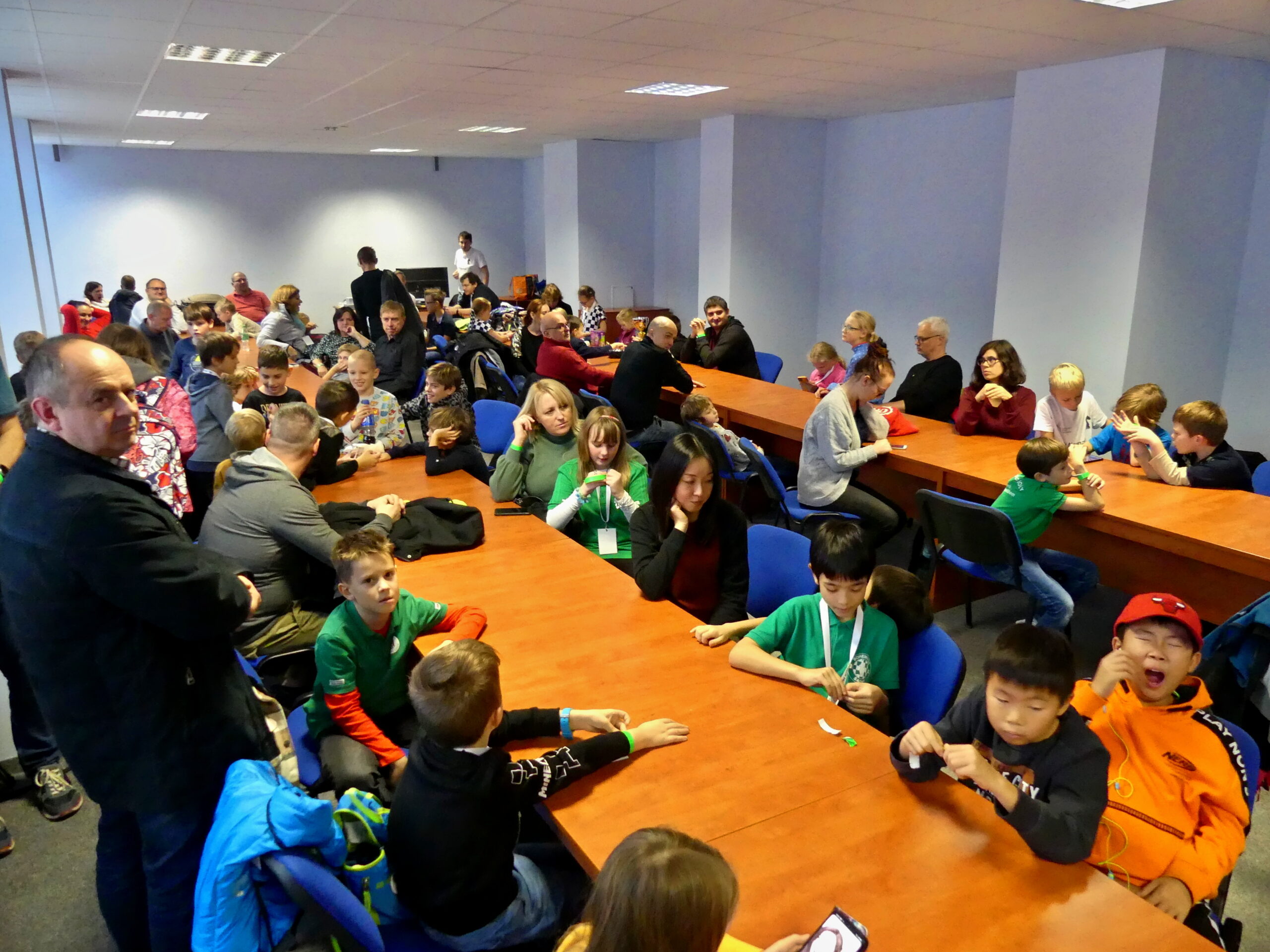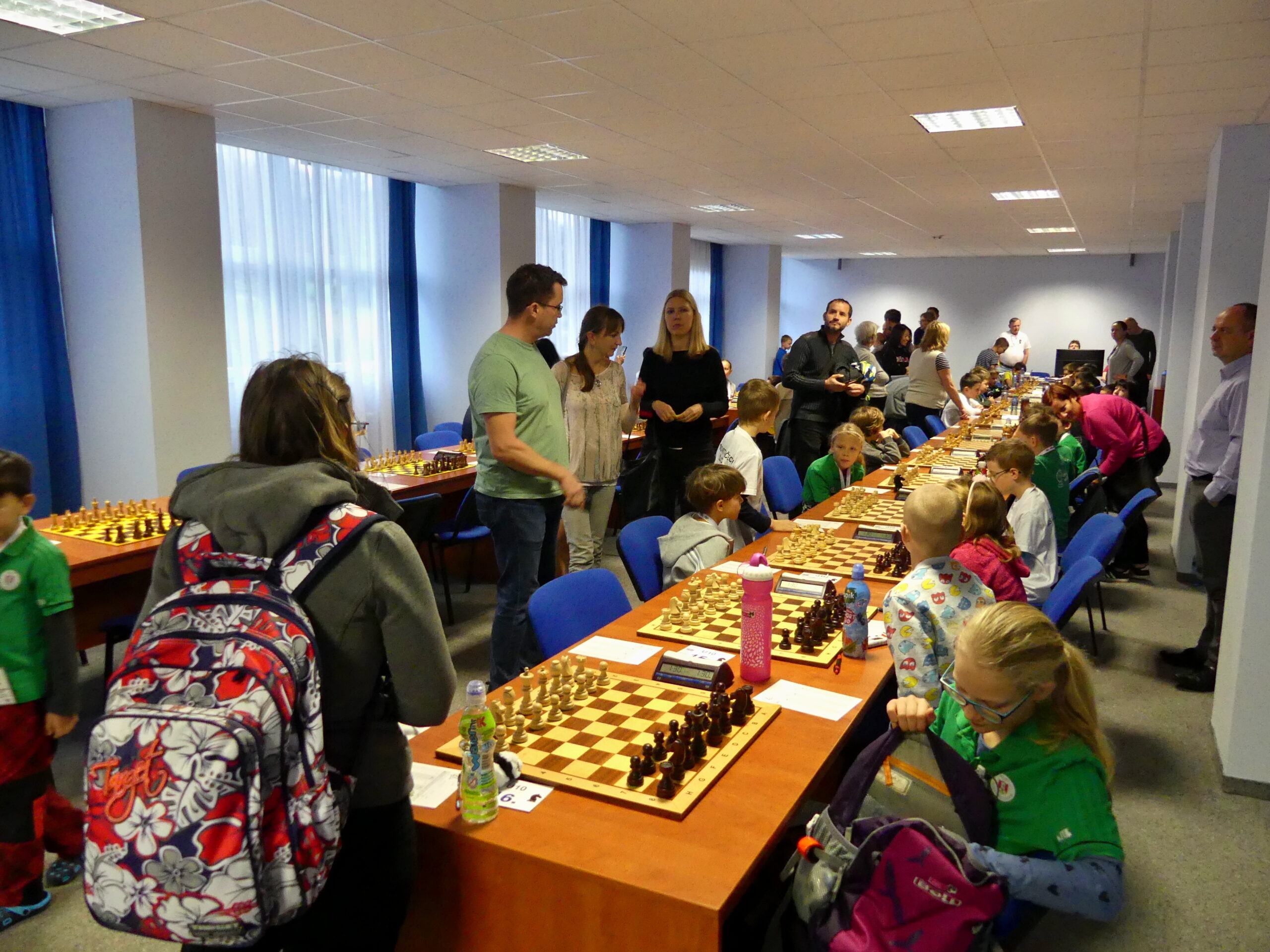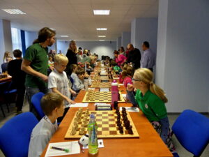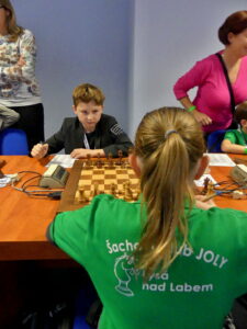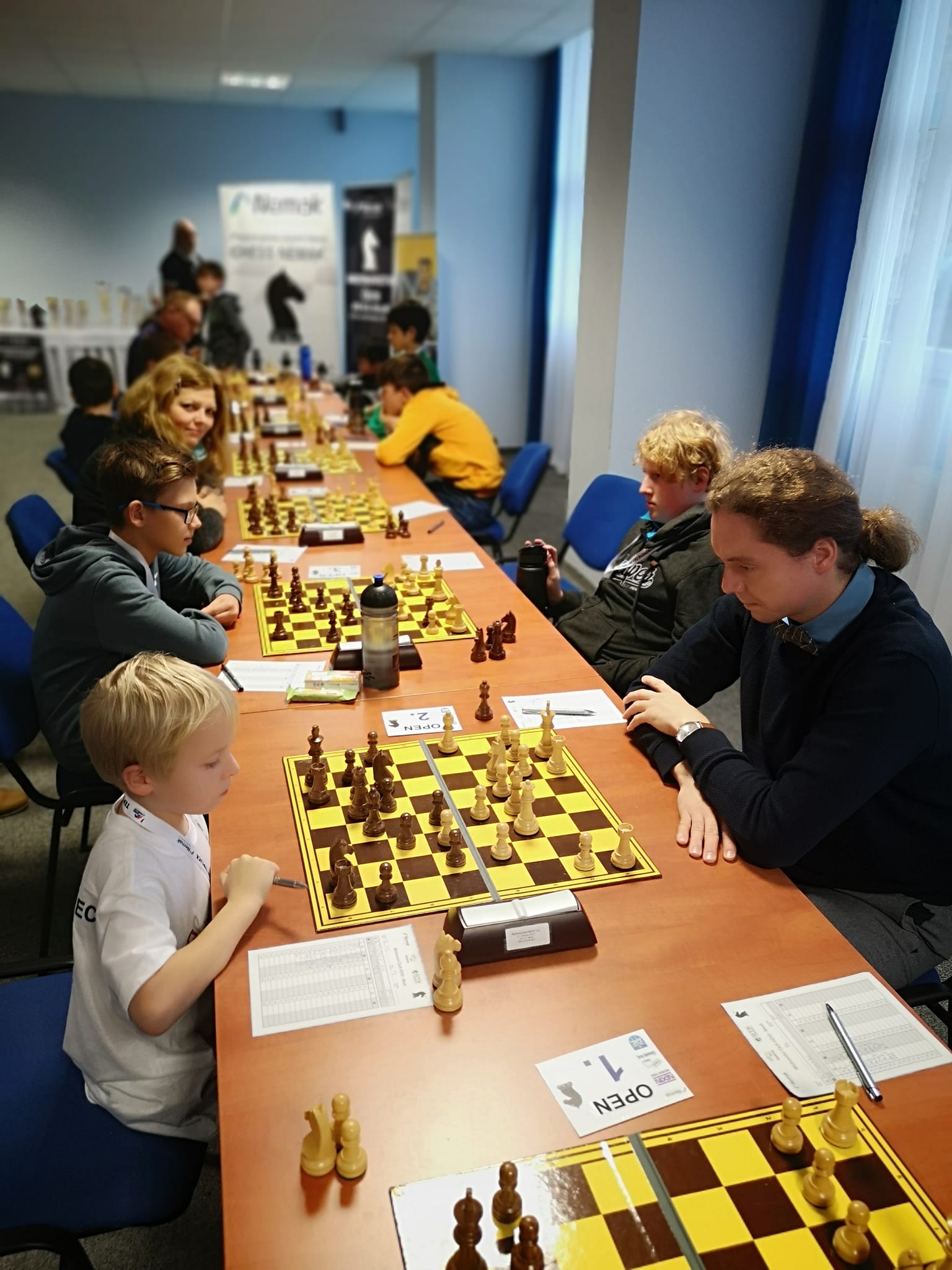V plné parádě, tak to mám rád, tak se mi to líbí. V první lajně předseda svazu, ředitel turnaje, hlavní rozhodčí… ale také zdejší primátor, senátor za Teplicko, posléze i hejtman. Děti ve „firemních“ tričkách. Hrací místnost prostorná – vejdou se najednou desítky i doprovodný open. Ten ale naštěstí začíná až odpoledne shodně s druhým kolem mládeže, takže mezitím mohu psát tyto řádky a opravovat slohovky. Očekavané derby Pokorný-Dlouhý se nakonec nekoná, pořadatelé upravili startovní listinu/rozlosování prvního kola, takže kluci nesedí proti sobě, nýbrž vedle sebe. Marian má do prvního kola bílými soupeře bez ratingu Jonáše Fadrného, tady těžko něco odhadovat. Klučina je o rok mladší a oddílová příslušnost (Lysá) dává tušit, že už něco umět bude.