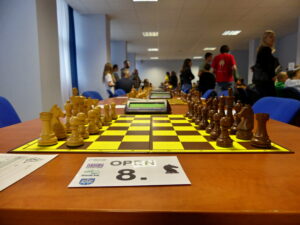 Oběd, podobně jako večeře i snídaně, opět super. Kluk má podruhé bílé, tentokrát soupeř z Říčan – tam to s mládeží taky náramně umí. Já začínám open na druhé šachovnici, místní soupeř dokonce mladší než Marian.