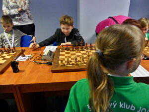 Junior dvě hodiny bojoval a zodpovědně přemýšlel, ale soupeřka byla lepší a vyhrála po zásluze (černému zůstal slabý dvojpěšec a ve snaze o protiútok přehlédl vidličku). Při pohledu na partii byste neřekli, že oba aktéři nemají rating ani 1100… Teď a v klidu odpočívat, odpolední kolo bude pro nás oba hodně důležité ve vztahu k dalšímu vývoji turnaje.