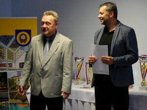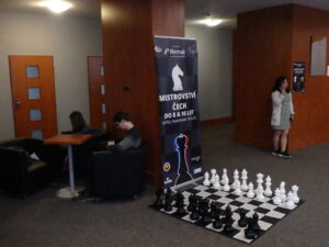 Chápu, že prostředí, kvalita ubytování či stravování, případně organizace samotná, jsou často předmětem vášnivých debat… tož musím zaťukat, naše první dojmy jsou báječné. Ochotní pořadatelé, pokoj prostorný a s balkonem, večeře de luxe. K tomu sympatický „chessshop“ a první z konkurentů přijel Karel Petrželka s vnukem – zástupci Pardubického kraje alespoň na úvod v popředí 🙂 A to ještě reálně hrozí, že se kluci potkají hned v prvním kole!