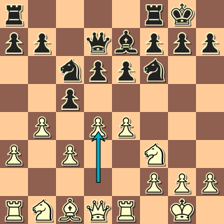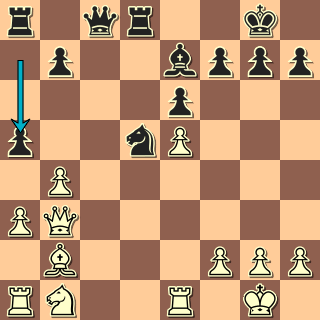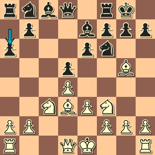 O pár tahů později se na šachovnici trochu prosvětlilo, bílý má sice předpolí na e5, ale bez bělopoláka nevypadají šance na útok na královském křídle nijak mimořádně; a na tom dámském to je bílý, kdo má vyrovnávat.