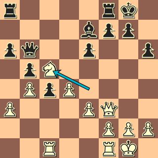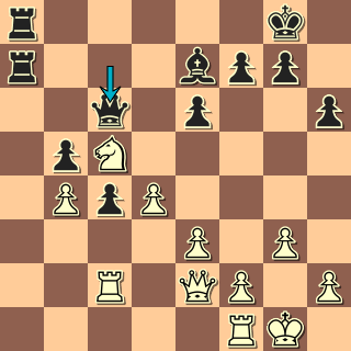 Tady bylo možné zahrát 25. … Dd2 se ziskem pěšce. Vypadá to trochu riskantně, ale bílý se snad k ničemu nedostane. Černý ale zahrál radši na jistotu 25. … Dd7 26. Sd4 Dc6 27. Dxc6 bxc6.