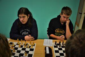 Matěj má ve věžovce pika a dvacet minut proti jedné. Tomáš stále pěšec méně. Marian má velmi ostrou pěšcovku, záleží na každém tempu.