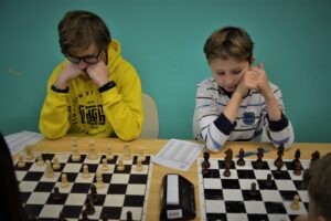 Jinde to ale vypadá slušně. Matěj na první hraje se silným Pokorným, ve francouzské tlačí na dámském křídle. Tomáš je s Večeřem bez pěšce, ale s jistou iniciativou na královském křídle. Marian hraje zhruba vyrovnanou jezdcovou koncovku s favorizovaným Lánou. A Vítek svádí ostrý vyrovnaný souboj s Vuovou.
