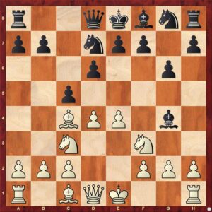 6. Jg5! Takový tah vždycky potěší. 6. ... Jh6 Samozřejmě hrozil mat na f7. 7. f3?! Lépe bylo 7. Dxg4! :-). Ale i tohle jde, černý nemůže Se6 pro Sxe6 fxe6 Jxe6 s dalším Jxf8 a Sxh6 7. ... Jb6! A teď je nejlepší Jxf7 nebo Sxf7+.
