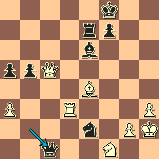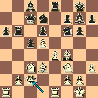 26. … Vxe3! 27. Vxe3 Sd4 28. Vxd4 Jxd4 a černý se zkonsolidoval. Bojovalo se dál a těsně před kontrolou postavil černý bílého před nutnost rychle počítat po 38. … Dc1!!