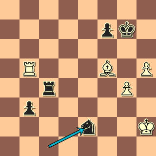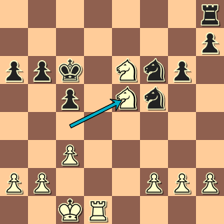 Koňský čtverec by byl ozdobou každé knihy šachových kuriozit. V čem je problém černého? Odvážný pěšec g2 teď bodne do slabin oba černé oře a když se zděšeně rozutečou, tři bílé figury upletou matovou síť! 22. … Kb7 23. g4! Jh4 Motor zoufale radí vlézt si do vidličky 23. … Jh6 24. g5 Ve8 25. gxf6 Vxe6, ale po 26. f7 Vf6 27. Vd8 Jxf7 28. Vd7+ zůstane bílému stejně figura. 24. g5 Je4(?) Konstruuje pomocný mat. Jenže 24. … Je8 25. Vd7+ Kc8 26. Vd8+ bylo stejně neperspektivní. 25. Vd7+ Ka8 26. Jc6