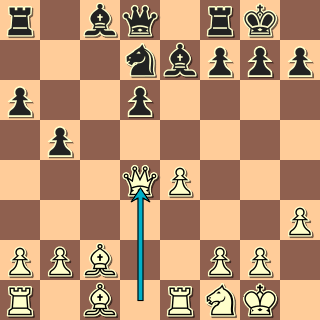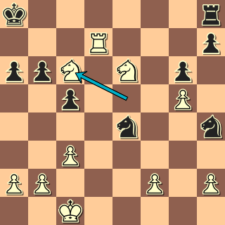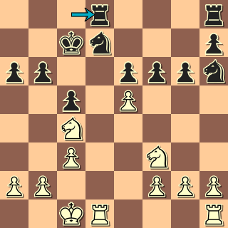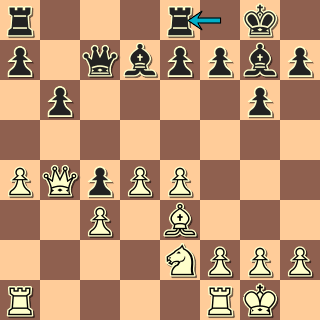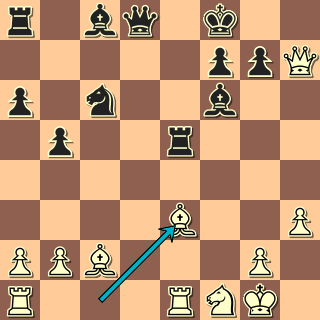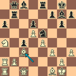 Tady se musí začít už zahájením: 1. e4 c5 2. Jf3 d6 3. c3 g6? 4. d4 b6? Inu, všelicos lze hrát … ale některé tahy prostě nemohou být dobré! 5. dxc5 dxc5 6. Dxd8+ Nenechává se zlákat na 6. Sb5+ Sd7 7. Dd5 se ziskem kvality – co kdyby to byla nějaká příprava? 6. … Kxd8