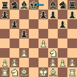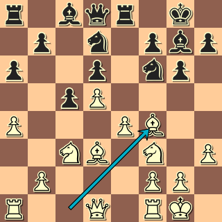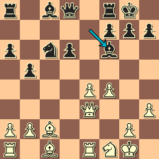To je víceméně normálka. Bílý se nehnal do nejostřejších variant a spoléhá na klidný vývin. Ke své škodě jsem si tu neuvědomil, že d6 nemusím krýt (12. … c4! s dalším Jc5, nebude totiž dobré 13. Sxc4?! Jxe4, např. 14. Jxe4 Vxe4 15. Sg5 Db6 16. Sd3 Ve8), ale ani 12. … Dc7 nic nekazí.