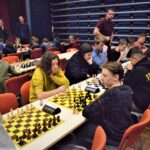 Naše výprava byla trochu neobvyklá z hlediska věku. V kat. nar. 2012 a ml. jsme měli jedinou zástupkyni (další hráče máme, někteří hráli před týdnem, ale tentokrát ne), v kat. 2008 – 2011 čtyři kluky, zato v dorostenecké kategorii 2004 – 2007 to bylo hned sedm hráčů, částečně i díky trojici, kterou jsem nalákal na vánočním turnaji gymplu, aby s námi jeli na pořádné šachy. A konečně mezi dospělými nás hrálo pět včetně Verunky, která už z dětských kategorií odrostla, a pana Křížka, který si to zkusil znovu tuším po čtyřech letech.