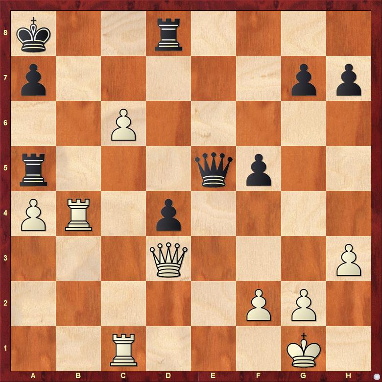 34. c7 Vc8 35. Dc4 Hrozí Dc6+. 35. … Dd5 36. Vb8+ 1:0
