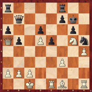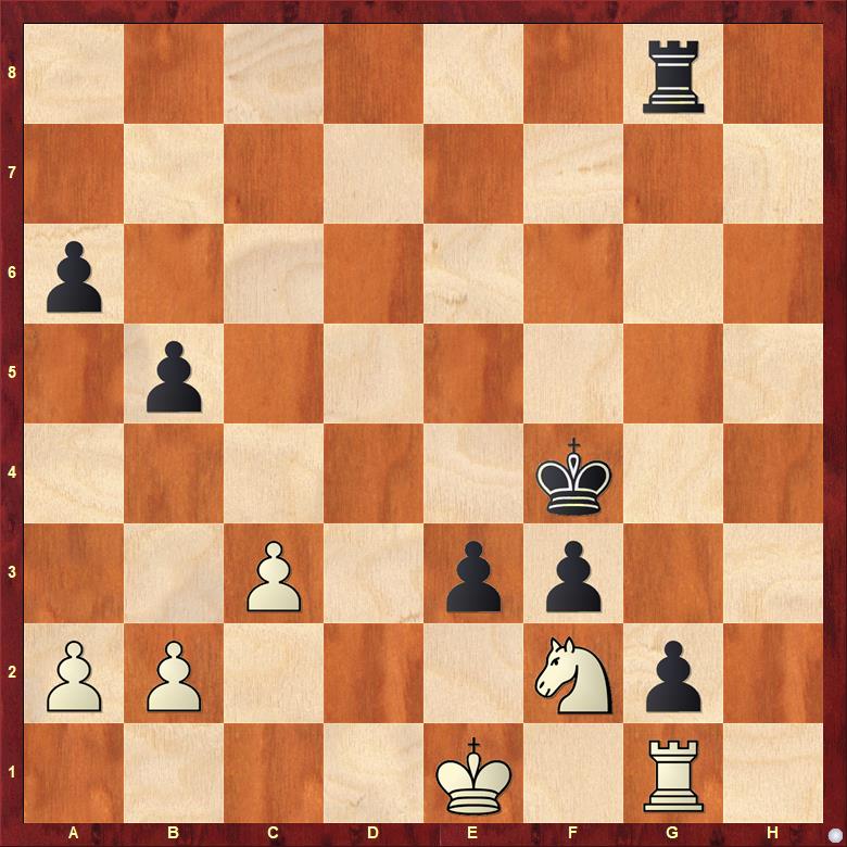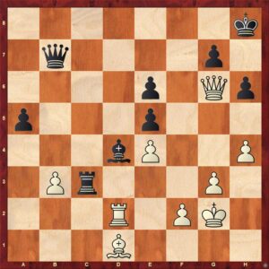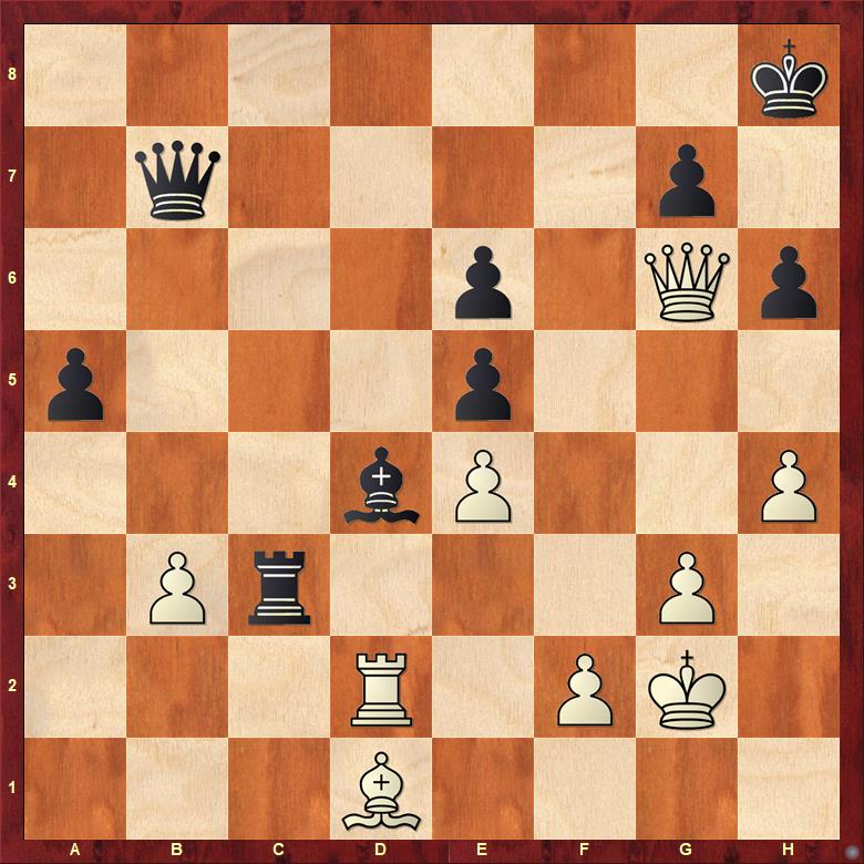 46. … Db4?? 47. De8+ Kh7 48. Sh5! 1:0 Ještě lze chvilku mlžit po 48. … Vxg3+, ale jen chvilku.