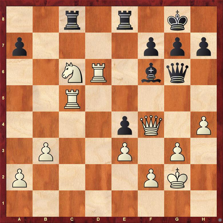 Tady je černý na tahu, ale nemá co hrát, bílé figury dominují, hrozí zejména h5.