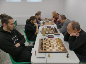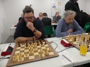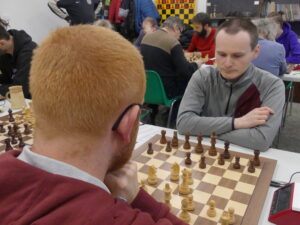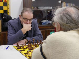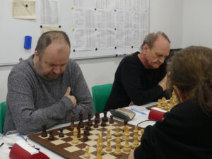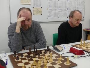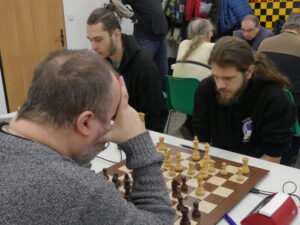 Šimek František-Hájek Petr 1:0 Těžká úloha pro našeho hráče, černými na poslední v kápédvojce čelit soupeři, který za Ústí válel před lety coby silná jednička. Petr zkusil sicilku, ale moc brzy zatoužil vyměnit aktivního Sc4 – zapomněl na vývin a bílý mu to předpisově nandal v miniaturce. Pro nás ale bylo klíčové, že jsme zadek ještě rozumně ustáli a vepředu utkání rozhodli.