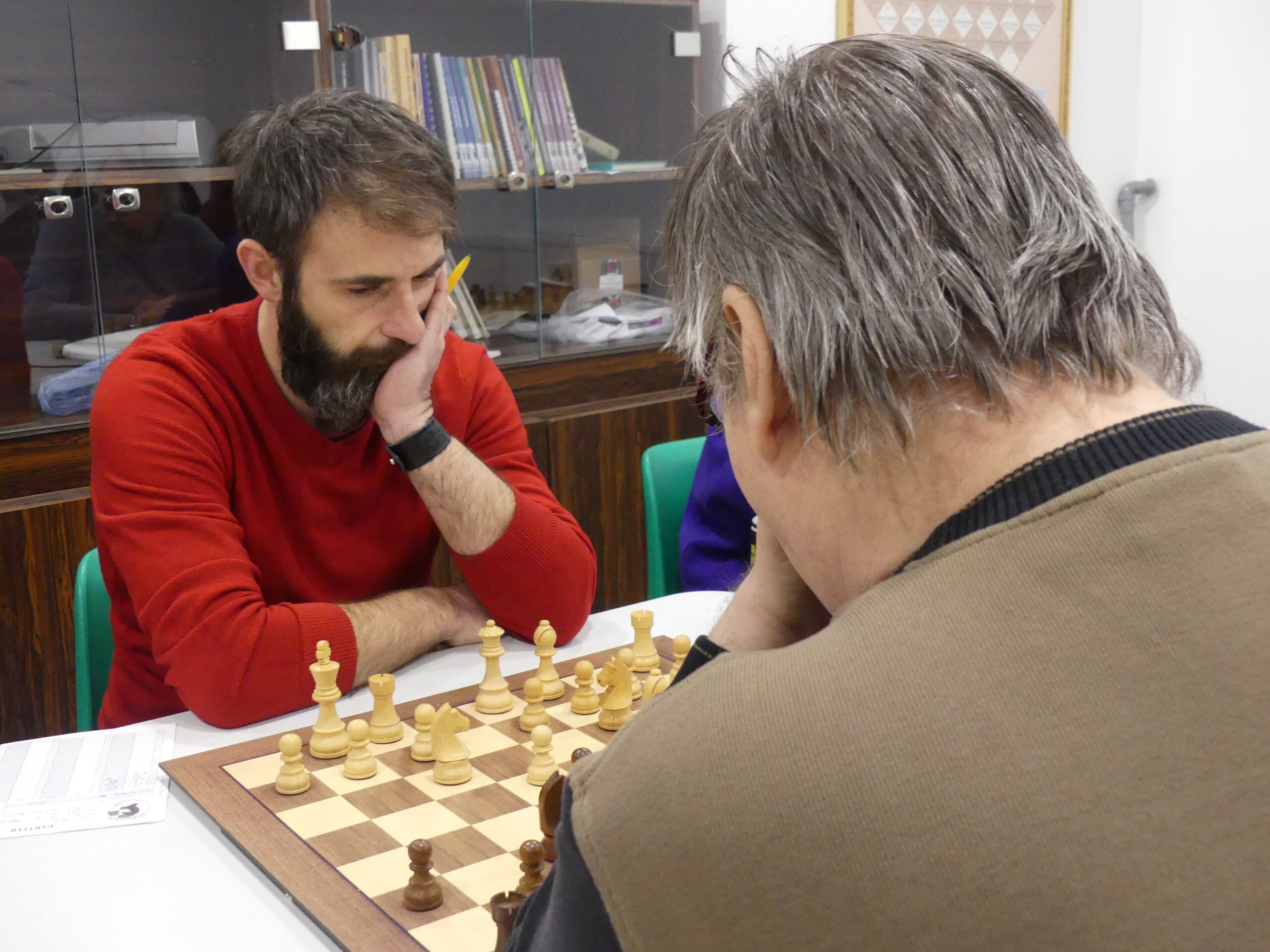 Kapoun Vít-Šimek Zdeněk 0:1 Šimi hlesl něco o příznivé bilanci a v partii to jen potvrdil. Módní Najdorf s Jg4 Víťa neznal, černému po výměně dam zbyla dvojka střelců a vidina lepší koncovky. Bílý se pustil do akce e5 ve chvíli, kdy k ní nebyl předpoklad, ocitl se v mizerné věžovce a v ní mu Zdenda nedal šanci. Jak snadné, když se to umí!