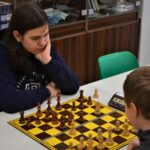 Už v prvním kole na sebe upozornil Vilém Popel, když v dramatické partii přehrával Tomáše, nakonec remis. Saša tradičně padala, zatímco Ondra měl pořád na hodinách kolem 15 minut. 😉