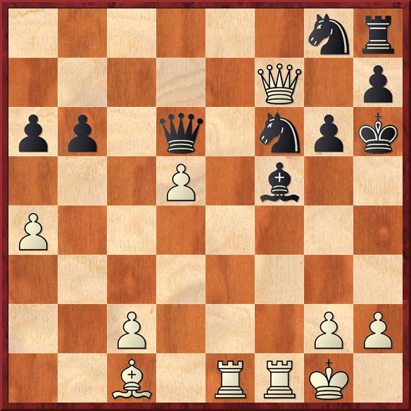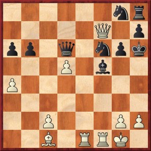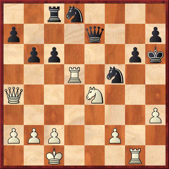 Zde černý po 31. … c6 doufal v zisk jezdce po uhnutí bílé věže a pěšcem na b5, jenže přišlo efektivní 32. Vxf5! gxf5 33. Jd6! s hrozbou Jxf5 a po Df6 vychází hezký mat 34. Jxf5+ Dxf5 35. Dh4+ Dh5 36. Df4 +  +-
