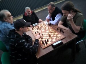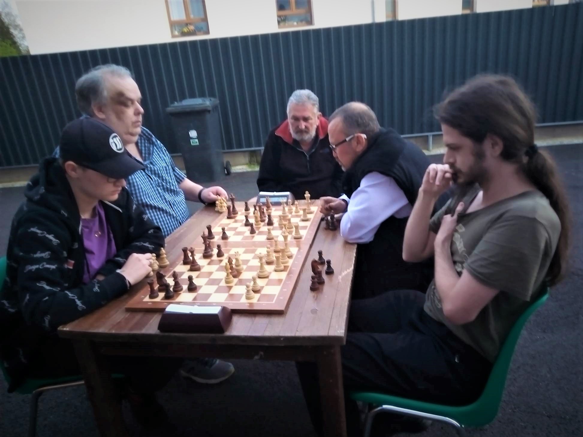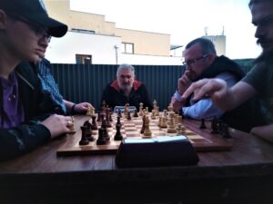 Na dnešním pravidelném bleskáči se sešlo nadprůměrných 5 hráčů, ze sklepa jsme vylezli ven na dvorek a atmosféra skoro připomínala prázdniny. (Fotky jen z mobilu.)