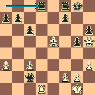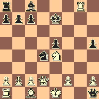 Černý má materiální převahu, ale oslabené královské křídlo dává bílému taktické protišance. Bílý to zkusil úplně přímočaře: 1. Dxh6??! Vxd1+ 2. Kh2 Ono to není za černého tak těžké, ale chce to pečlivě se zamyslet a vykrýt všechny hrozby. Každý trenér ví, že v podobných pozicích se může stát naprosto cokoliv (např. 2. … Dg6?? 3. Dh8 mat, že?). 2. … Dh7! Jediné, ale dostačující. 3. Dxg5+ Dg6 4. Dh4 Dh7? Samozřejmé bylo 4. … f6 a bílý by dohrál. 5. Df6? (5. Dg4+, ovšem!)
