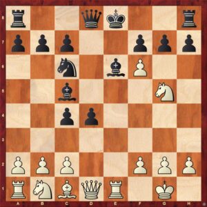 má bílý k dispozici hezký dvojšach 10. Sxc6++!, po kterém vyhraje. Proti dvojšachu se totiž nelze bránit braním figury. To jsme si hned vyzkoušeli jako úkol k řešení. Vidíte, že od studia zahájení se lze snadno dostat k tréninku taktiky. Mimochodem: když na lichessu dohrajete partii a necháte si ji „zanalyzovat“ motorem (funkce ANALÝZA), objeví se vám vpravo dole modrý nápis, který nabízí možnost řešit diagramy právě na použitou variantu zahájení – velmi doporučuji! (Jako všude u diagramů na lichessu lze vlevo nastavit různou obtížnost.)