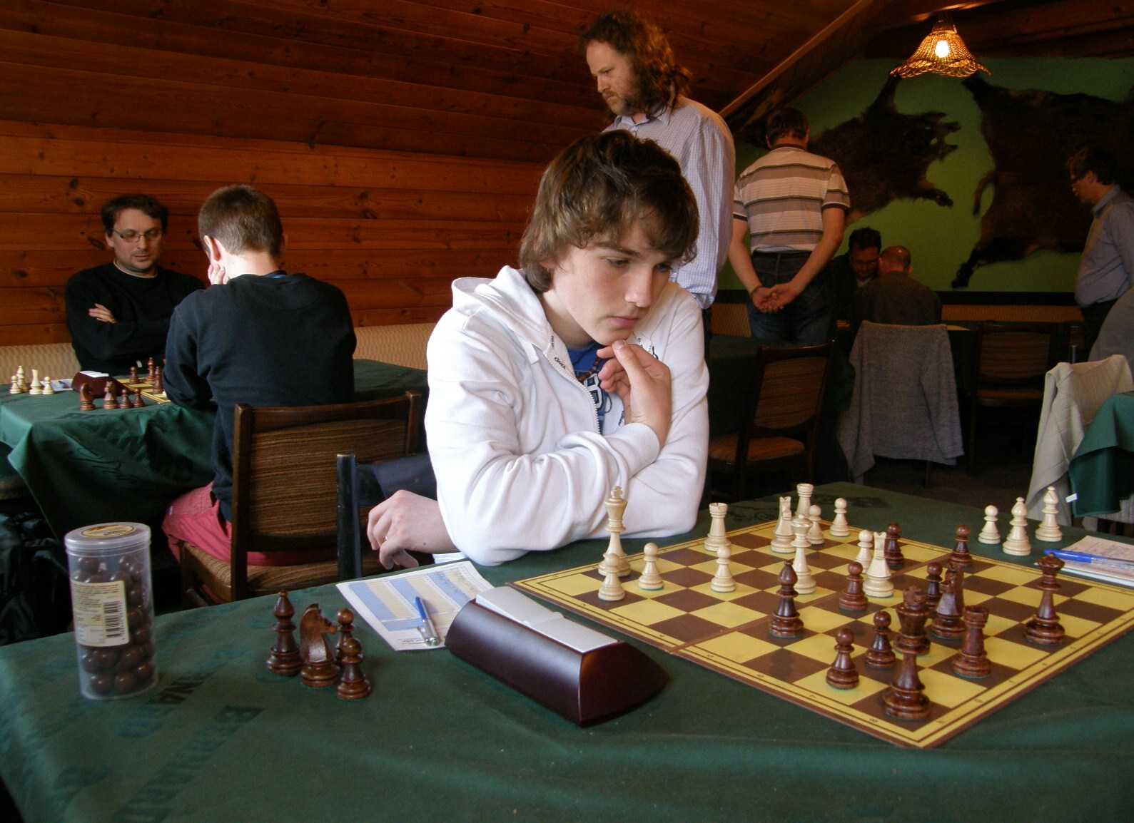 Jan Šimek (2150) – Tomáš Pokorný (2250) 1:0 Nějaká netypická sicilka (Paulsen s c3), černý neudělal včas rochádu, při pěšcích e5, d4 x e6, d6 došlo k otevírání konzerv tahem d4-d5! a černá pozice se zhroutila v miniaturce. Bravo! Myslím, že Honzu příští rok pustím před sebe, on to fakt nehraje špatně 🙂