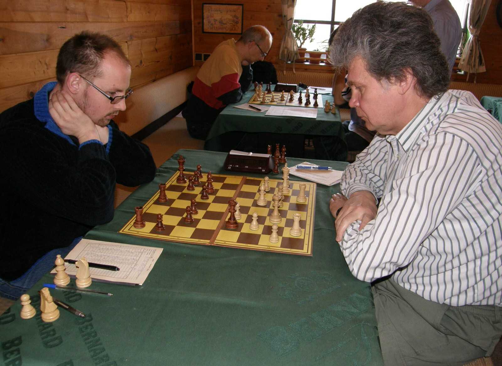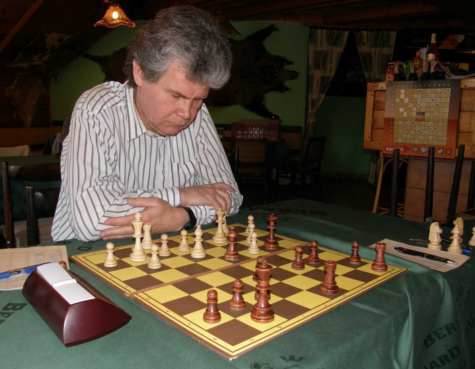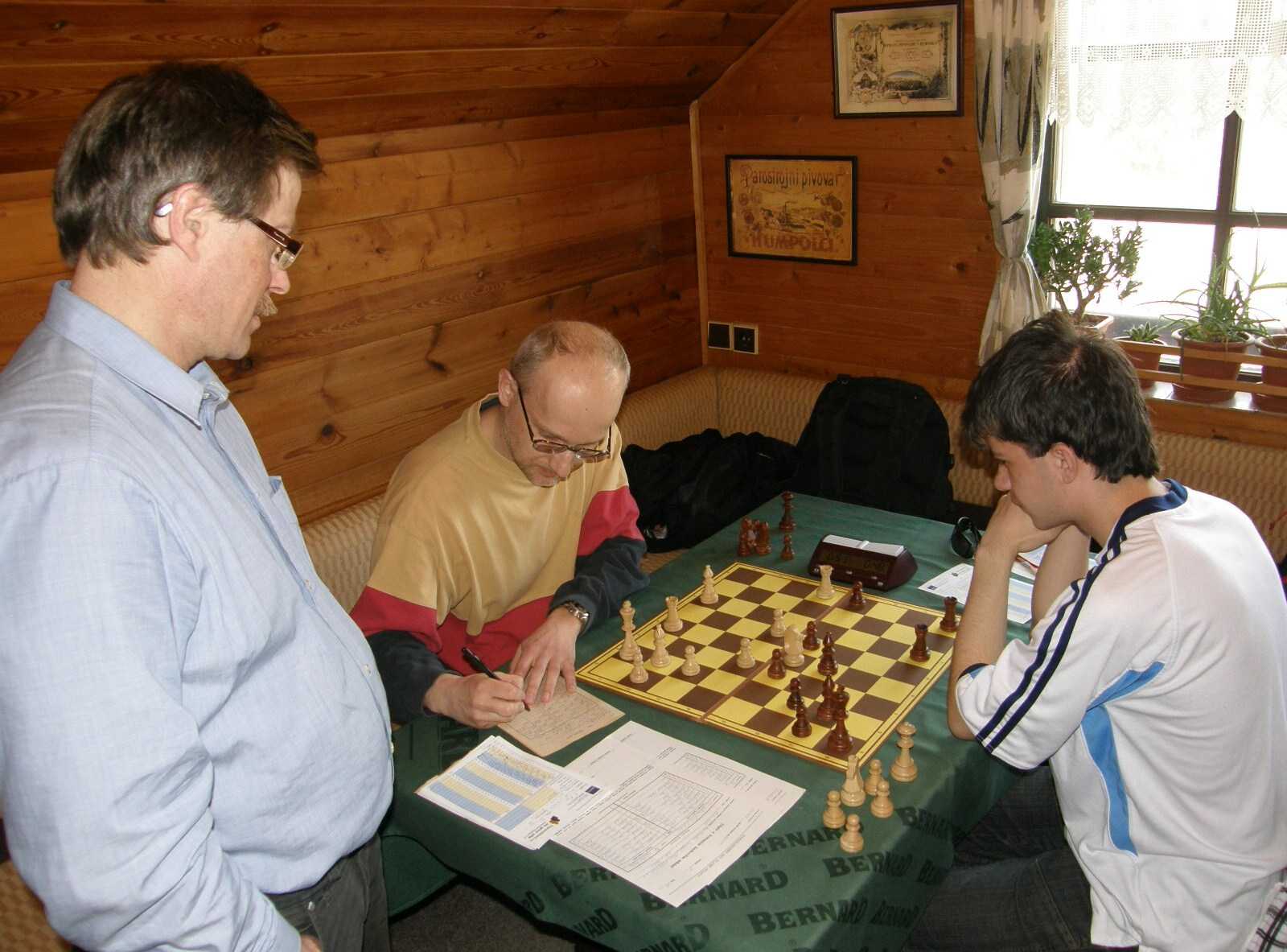 Martin Pečinka (2062) – Jan Rusnák (2034) 0:1 Aljechinova. Martin se snažil využít slabých černých polí okolo soupeřova krále, získal kvalitu za nějakého pěšce, očekával jsem výhru … pak jsem před kontrolou viděl, jak kvalitu vrací a zůstává bez pěšce, koncovku V+S+3p x V+J+4p neudržel.