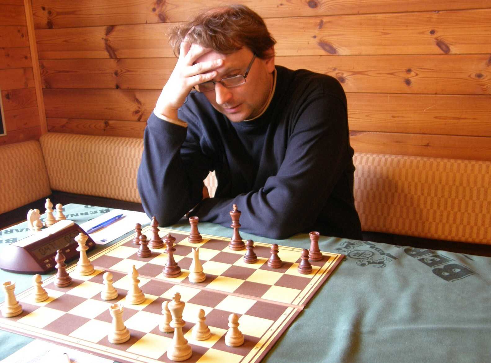 Tomáš Kraus (2123) – Pavel Holásek (2105) 1:0 Ve Svěšnikovovi jsem protihru měl, ale neodhodlal jsem se k nějakému obvyklému hazardnímu stylu „všechno na krále, centrum nechte soupeři“, aspoň že z toho vylezla věžovka 2:3 na jednom křídle. Bohužel místo rychlé půlky a popíjení dole musel soupeř hrát, takže jsem dohrával do pozdního odpoledne a v poslední pětiminutovce jsem to definitivně zazdil, soupeř svou studiovou cestičku k výhře využil.