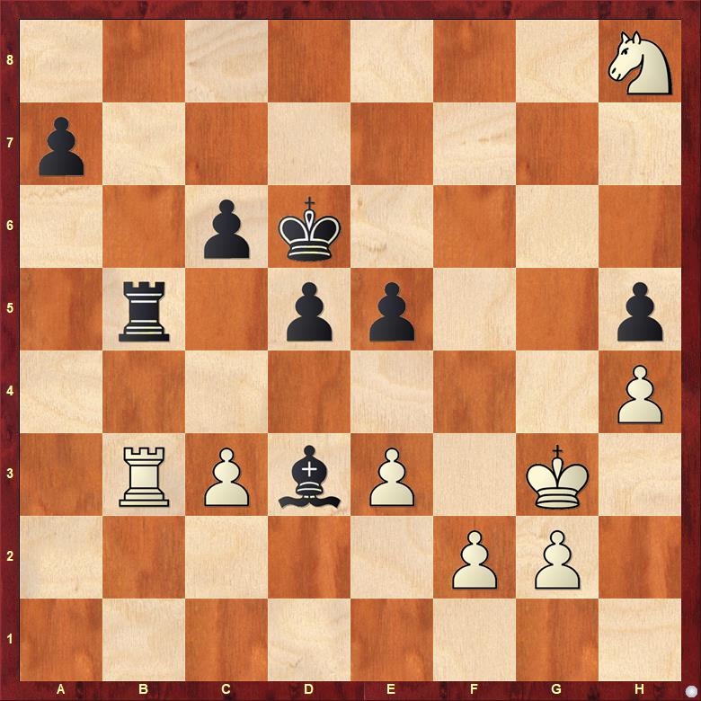 Mě jste mohli sledovat online, myslel jsem, že po ovládnutí sloupce a s mnohem lepším časem bez problémů vyhraju, ale v pozici byla zrada (hrozilo 26. Jc6!!), takže jsem musel aktivní figury jen povyměňovat a tahat na výdrž jezdcovou koncovku, což se nakonec povedlo. Dnes přes devět hodin hry, to jsou konečně zase šachy, mám dobrý pocit. (Soupeř hrál dnes ještě o něco déle, a to je mu skoro sedmdesát, borec!)