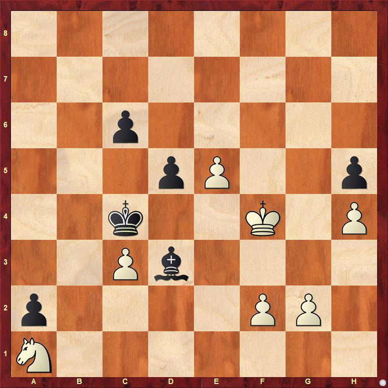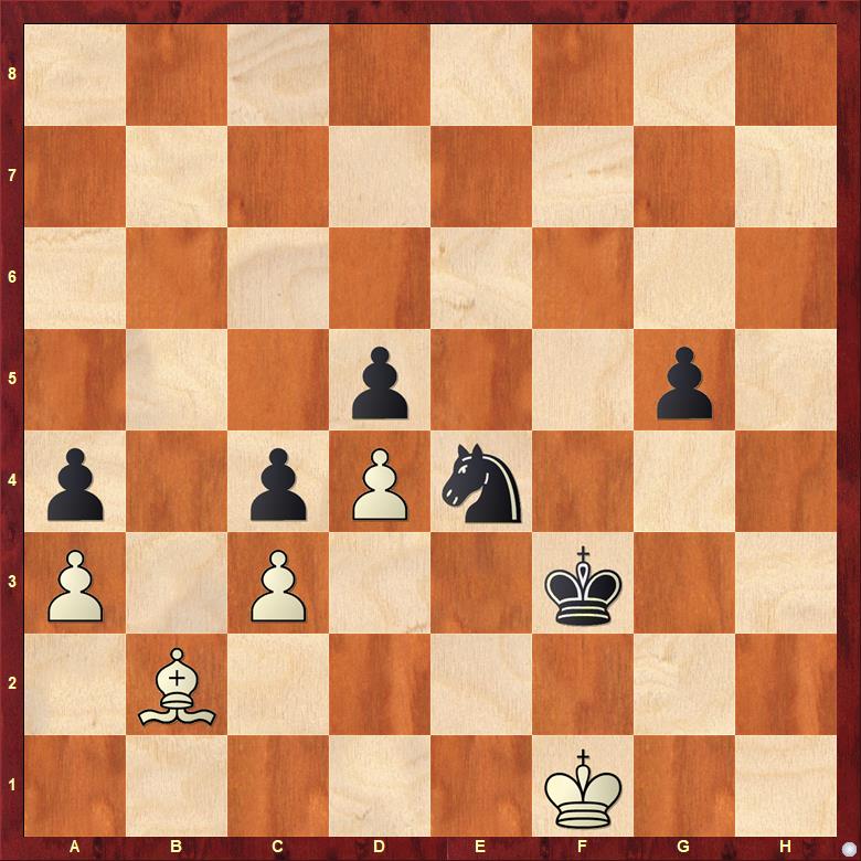 Tady je samozřejmě hotovo, protože géčko, které mám navíc, šlape. Jinak je ale hezky vidět i to, co pořád zdůrazňuju pod heslem nejdůležitější cvičení, totiž působnost figur v koncovce. Porovnejte bílého tragéda na b2 a černého démona na e4. Porovnejte aktivitu obou králů. A do takových pozic se máte snažit dostávat.