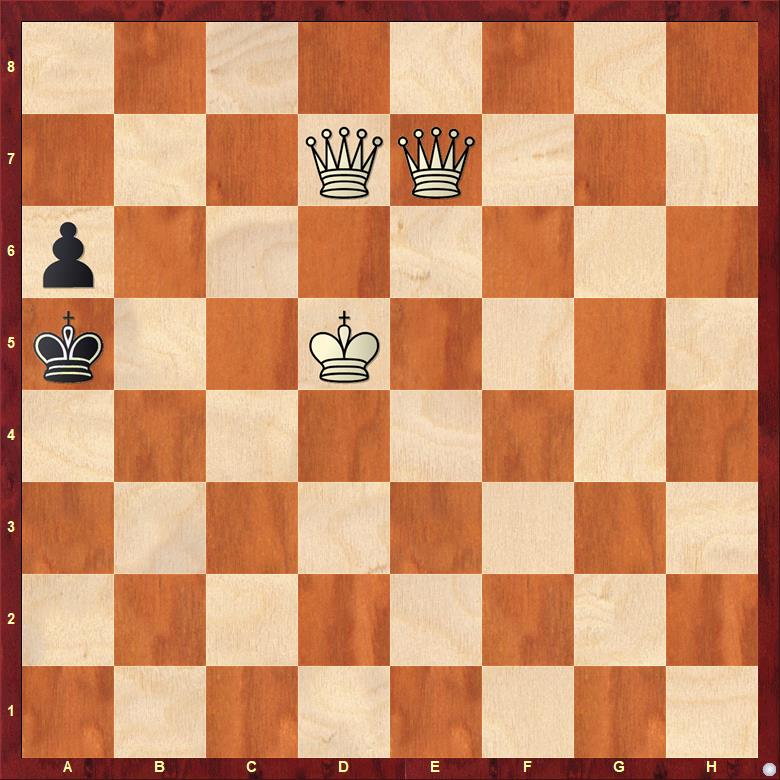 2) Když nevidím mat, šachuju. Když šachujete, nebude to pat. Třeba Dc5+ (jé, hele, mat!), Dc7+, Da3+. Dejte pět šest šachů, naskáče vám půlminuta a můžete se trochu zamyslet.
