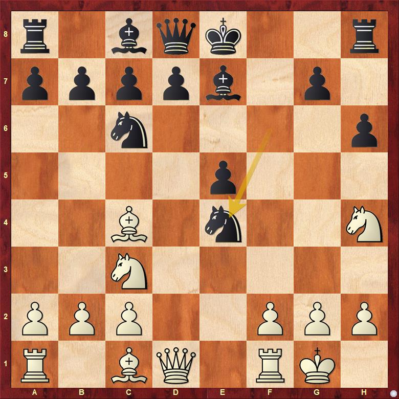 Bílý na tahu tu má okamžitou výhru, kterou neviděl ani hned, ani po 1. Jxe4?? Sxh4??. Ani někteří účastníci kroužku to hned neviděli.