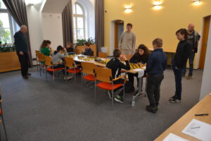 Tomáš sice uhrál jednu figuru zpátky, ale je mu to málo platné. Vítek má prohranou pěšcovku. Matěj pořád bez materiálu, Saša pomalu pod matem.