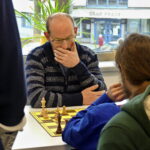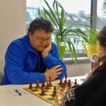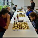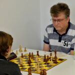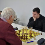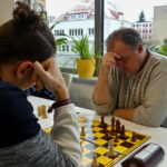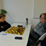 Píše Michal – Lipavský Dušan 1:0 Mínus 400 a něco rating? No problem, pokud jsi bojovný mlaďák a… netušíš, jak silného a zkušeného soupeře máš proti sobě. Michal až po podepsání partiáře v druhé nejdelší bitvě dne zjistil, jakého borce sundal (dlouholetý ligista s ELO nedaleko 2000). Hrála se nějaká hodně neteoretická holandská, kde bílý přirozeně nastoupil figurami do centra, pak sice ztratil/obětoval floka b4, ale měl nadále aktivní figury a černý po zatmění přišel o figuru – dáma napadla dvě lehké figury. Zbytek byl ve velkém stylu: bílý útočil, černý hledal marně protihru (postouplé a/b duo) nebo věčňák. Skončilo to po časovce roztomilým matem vyhnanému králi, Dušan se stihl vzdát tak akorát. A vidět tu radost v Michalových očích… k nezaplacení!