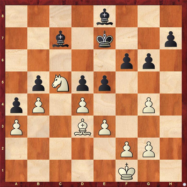Ale v téhle pozici před kontrolou už nemám ani ty iluze, navíc jsem zahrál strašlivé 38. f3?? a hned jsem viděl 38. … exd4! 39. exd4 Sf4 se vtržením střelce do mé pozice.