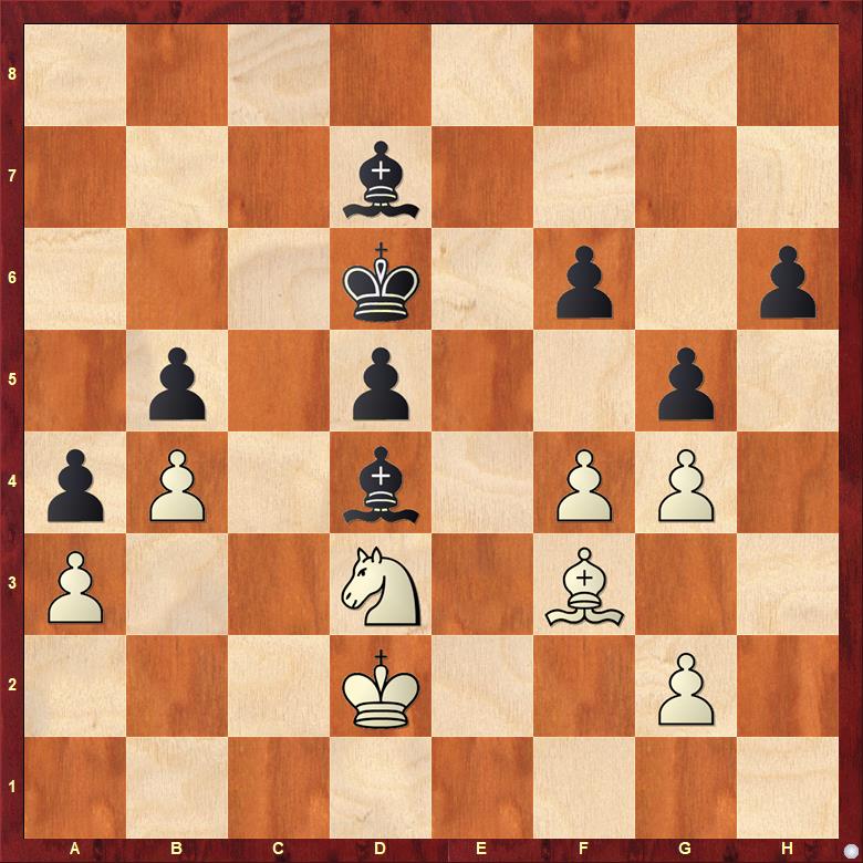 Dvojné fianchetto, pryč z teorie, rychlá výměna dam. Říkal jsem si, že asymetrická koncovka bude Martinovi sedět, ale ten ji dal skoro hned za remízu, ani nevím, jestli se mu nelíbila, nebo měl jiný důvod. 1/2
