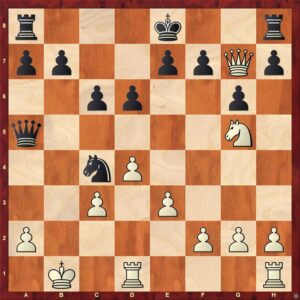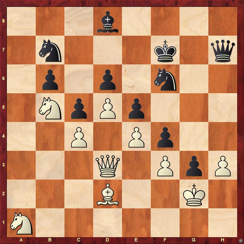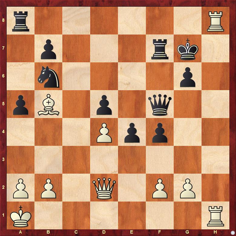 Bílý ale spustil vynalézavý útok a v jeden moment mohl stát lépe, pokud by našel 25. Se8!!, věž totiž nemůže ustoupit.
