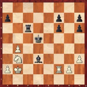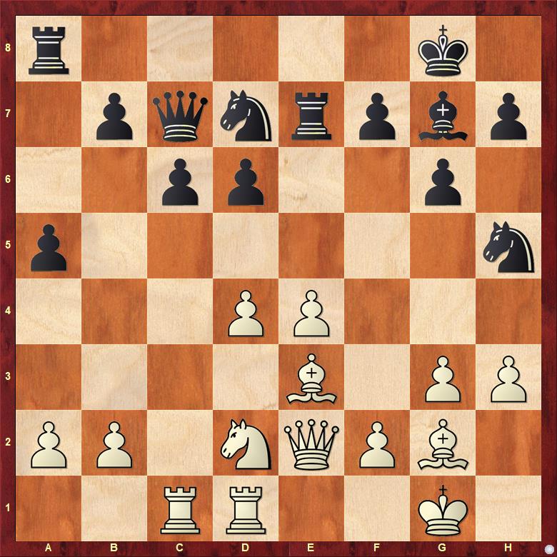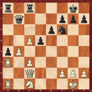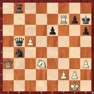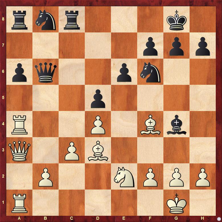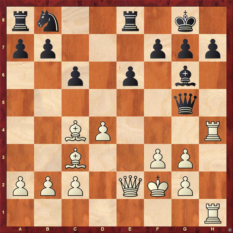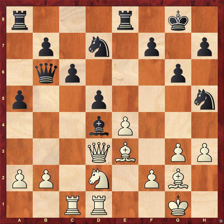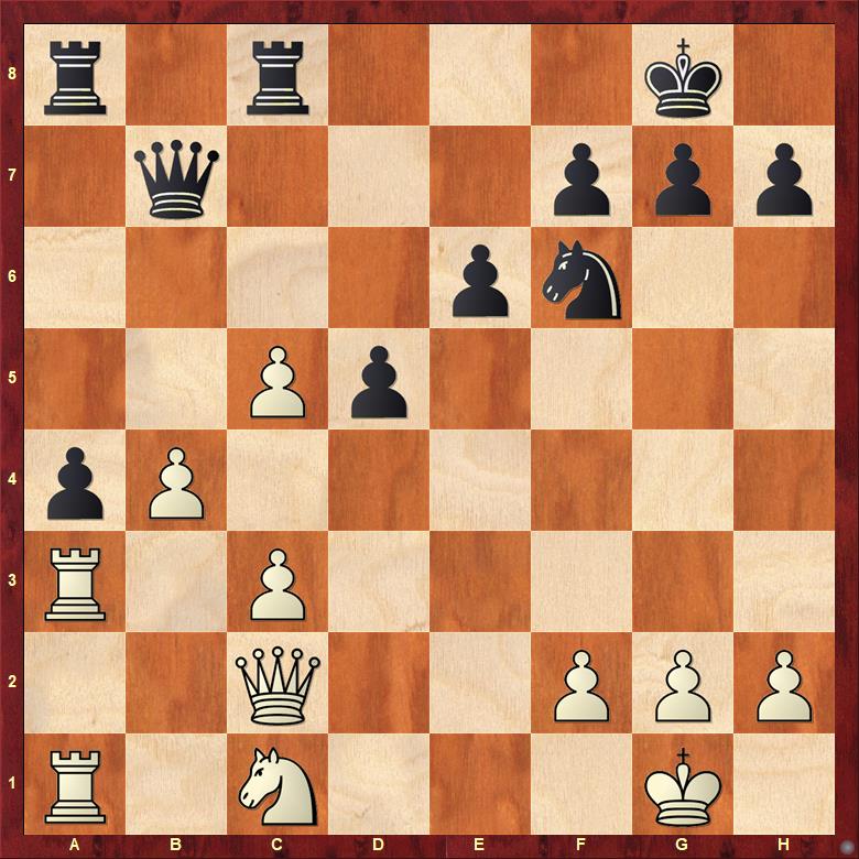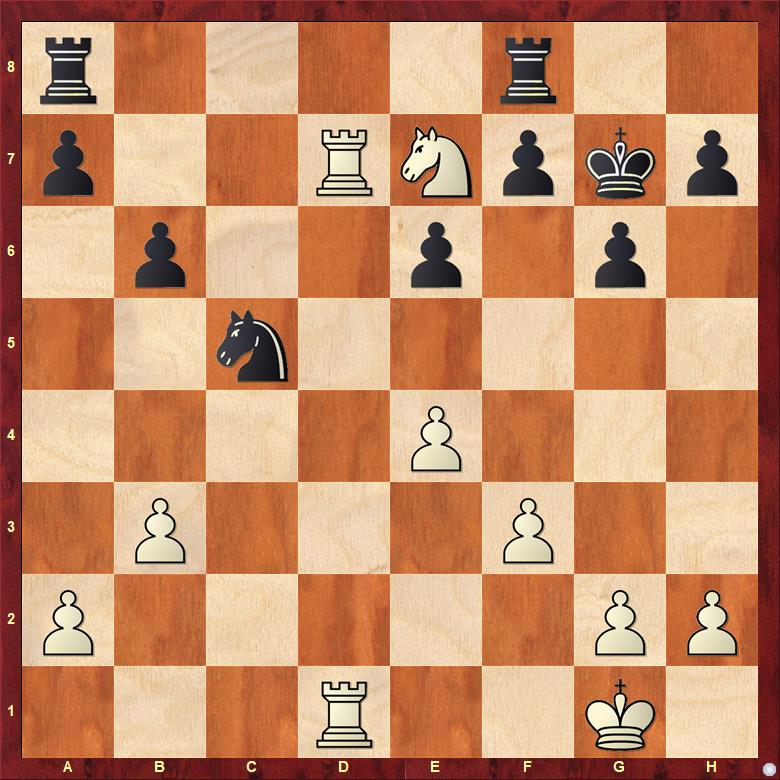 22. … Sxe3 23. fxe3? Jxg3 24. Kf2 Je5! 25. Dd4 c5! 26. Dxc3 Jxe4+ s rozpadem bílé pozice, slabým králem a materiální převahou černého. Během pár tahů 0:1