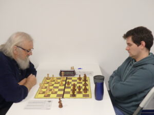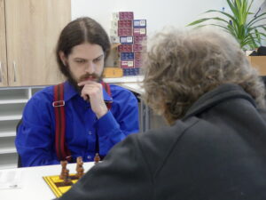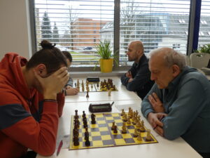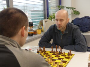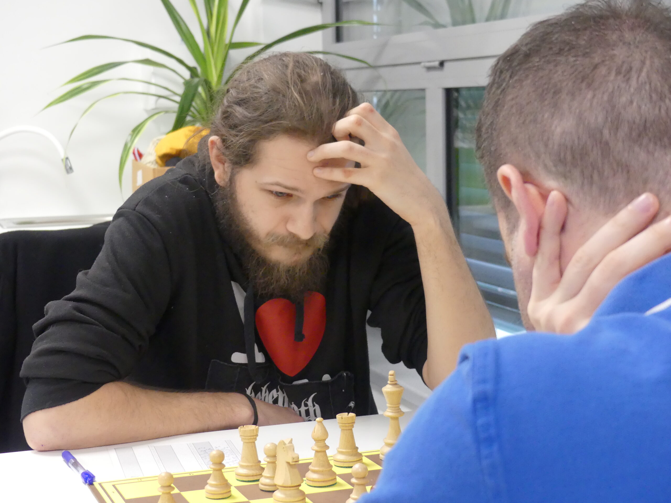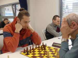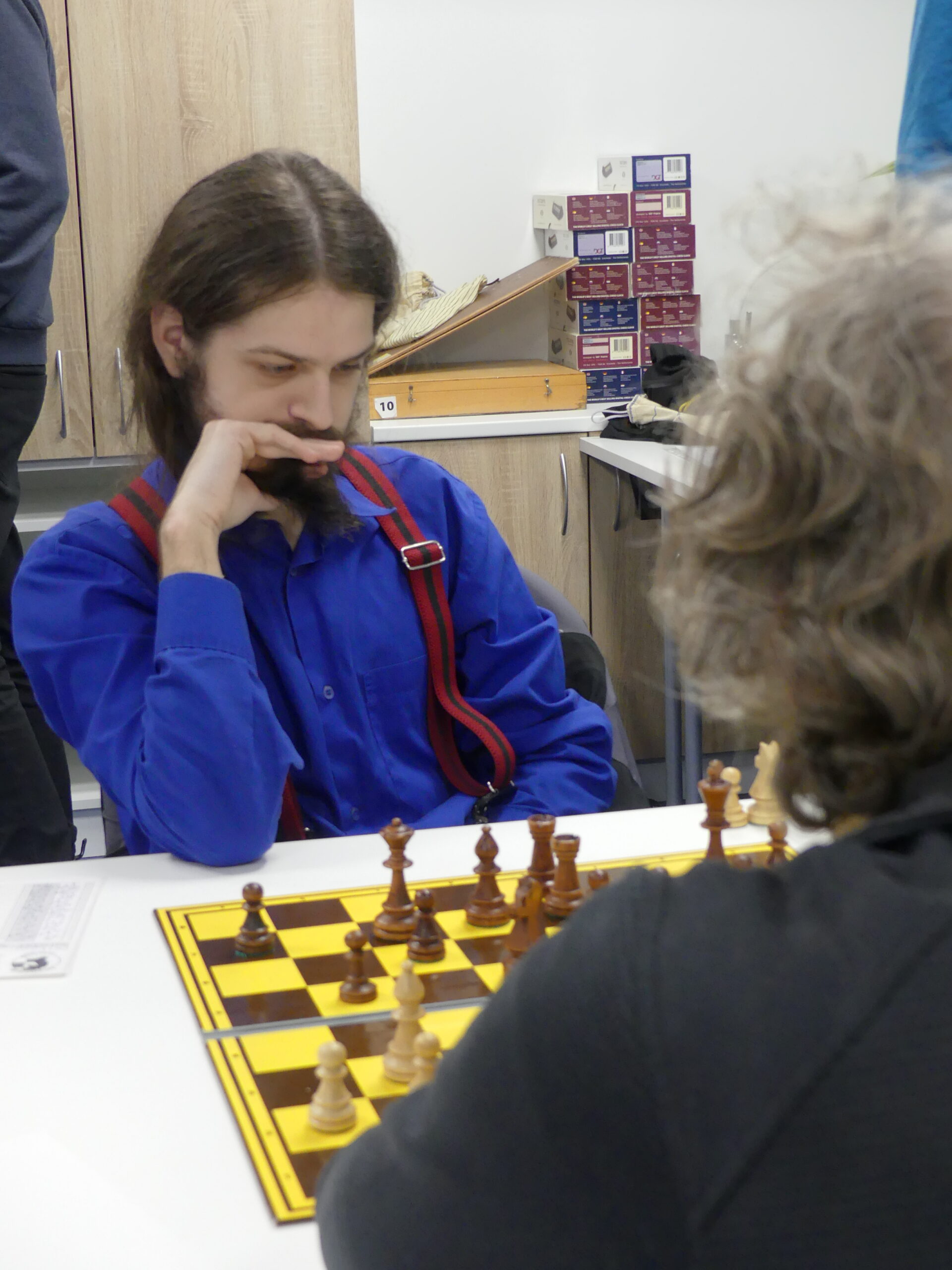 Mareš Petr st. – Makeš Martin 1/2 Dlouho teoretická bouda, kterou mám raději černými, ale Petr svému domečku věří. Tady ale bílý asi až moc dlouho převaloval figurky, sok na něj nastoupil po sloupcích h/g, přechodně obětoval figuru a ve finální pozici mu ryba šplouchá plus 2. Opět včas nabídnutá remíza, těžko chtít víc.