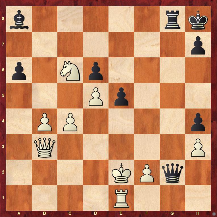 Kubu určitě musí mrzet tahle pozice, kde by 30. … Dh1+! vedlo do vyhrané koncovky. Naopak 30. … Dxc4? 31. Dd8! dalo bílému protihru a partie skončila za pár tahů věčňákem. 1/2